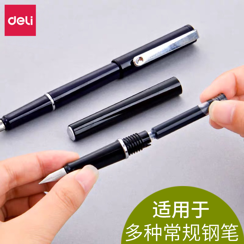 Deli/得力钢笔墨囊100支套装中小学生用墨水胆纯蓝墨兰黑色初学者练字笔可替换钢笔墨囊3.4mm通用直液式墨囊