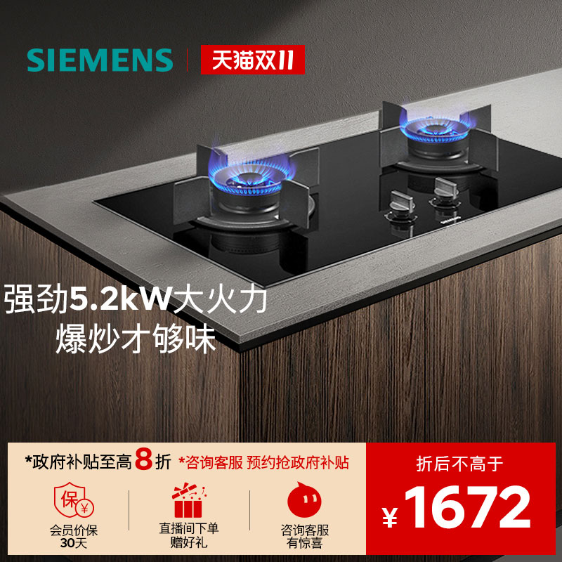 西门子嵌入式燃气灶具5.2大火力厨房家用双灶天然气3VBMP
