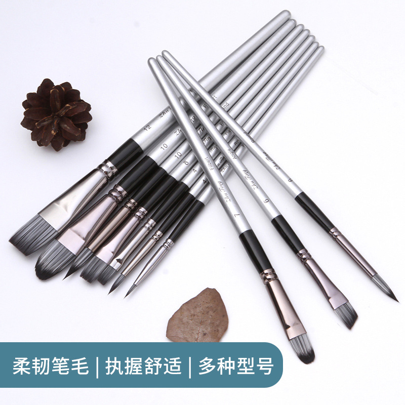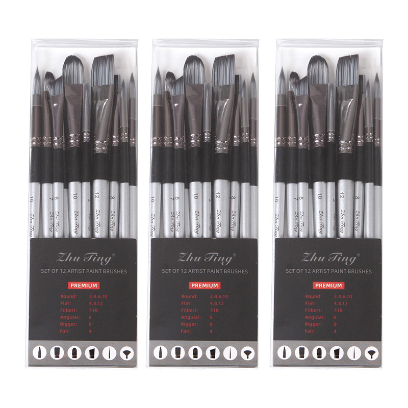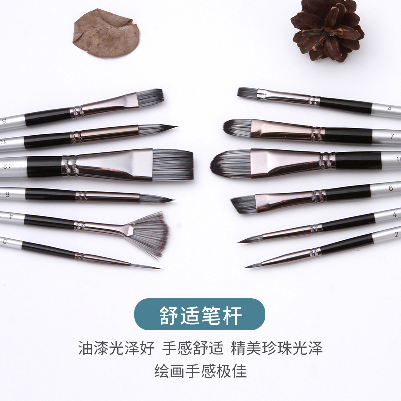 12支尼龙毛美术彩绘笔油画笔绘画笔套装水彩丙稀水粉画笔刷勾线油漆