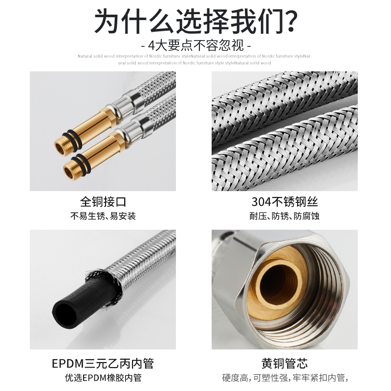 水龙头进水管防爆冷热上水管304不锈钢编织软管配件高压耐高温4分