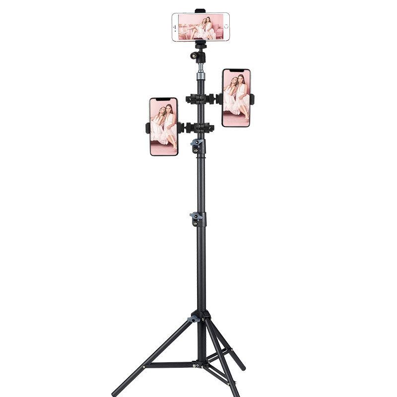 直播支架三脚架手机平板夹子头配件2三多双增多机位通用话筒设备