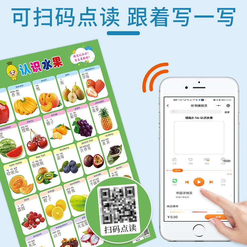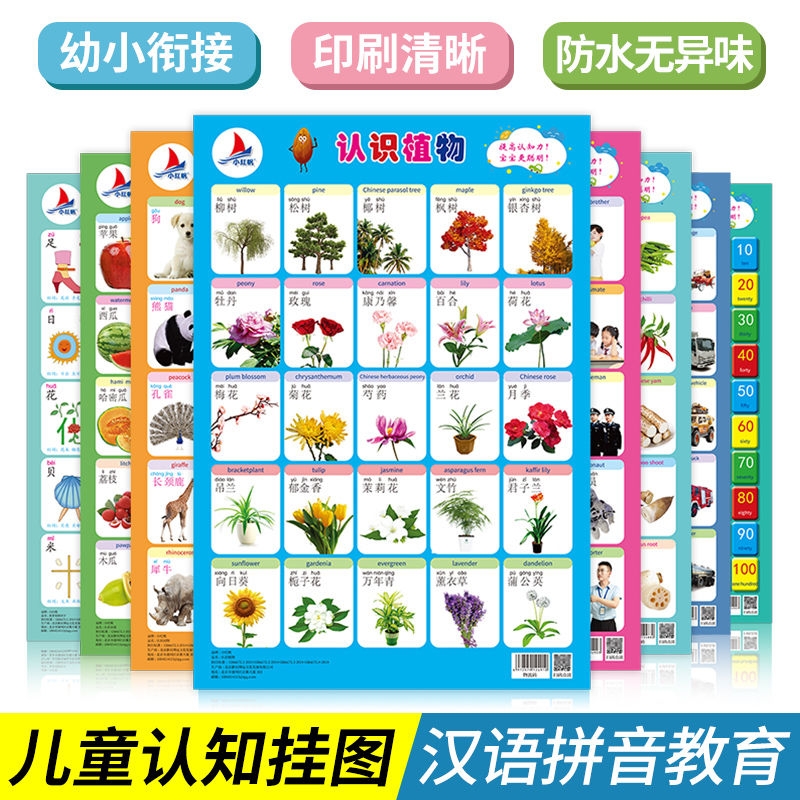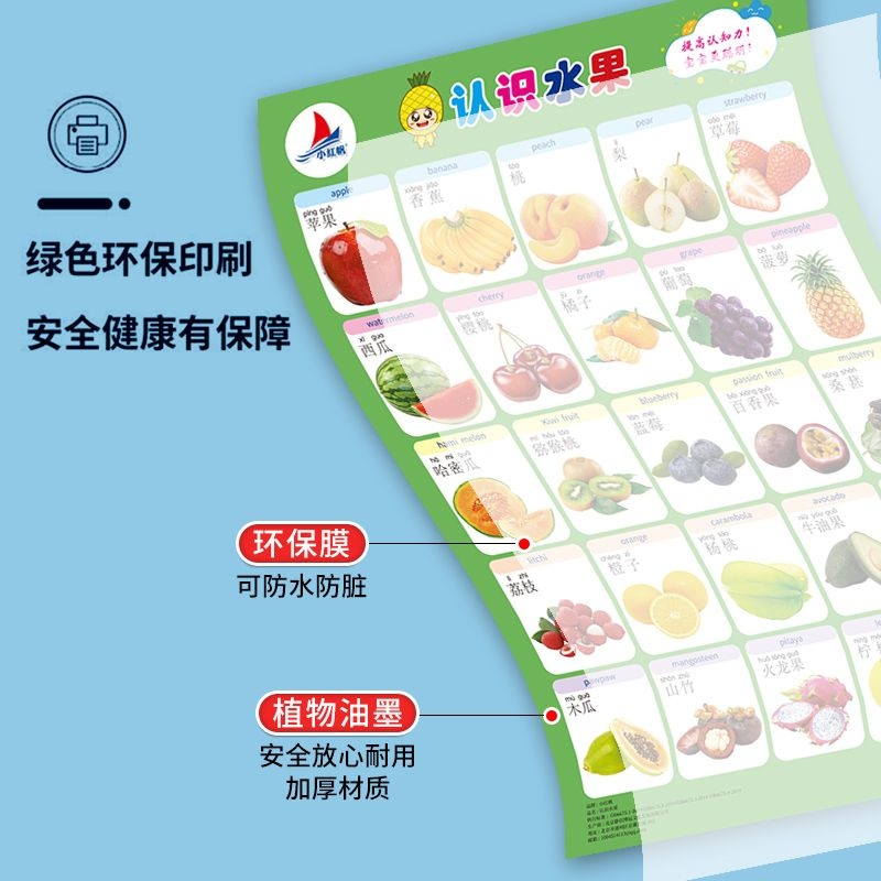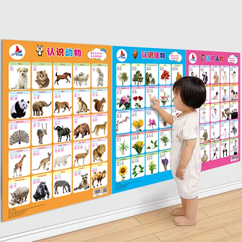 0-3岁宝宝早教挂图防水墙贴婴幼儿数字拼音字母表识字幼儿园益智启蒙认识蔬菜水果动物人物看图交通工具认知能力知识