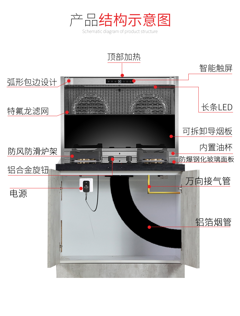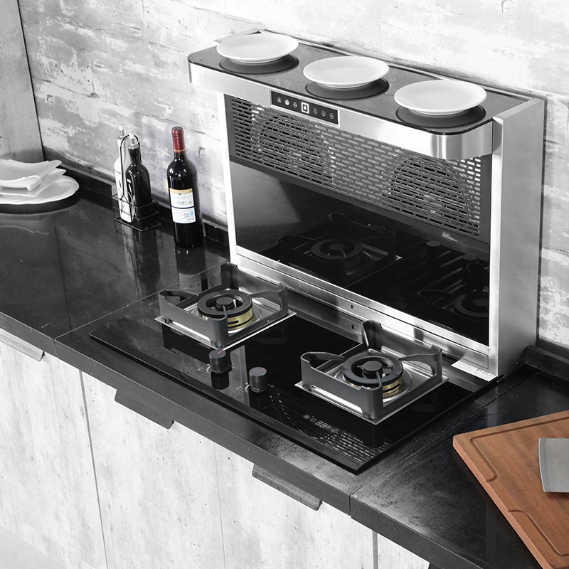 德福特F8侧吸下排无机箱分体式双电机集成灶自动清洗变频烟灶套装