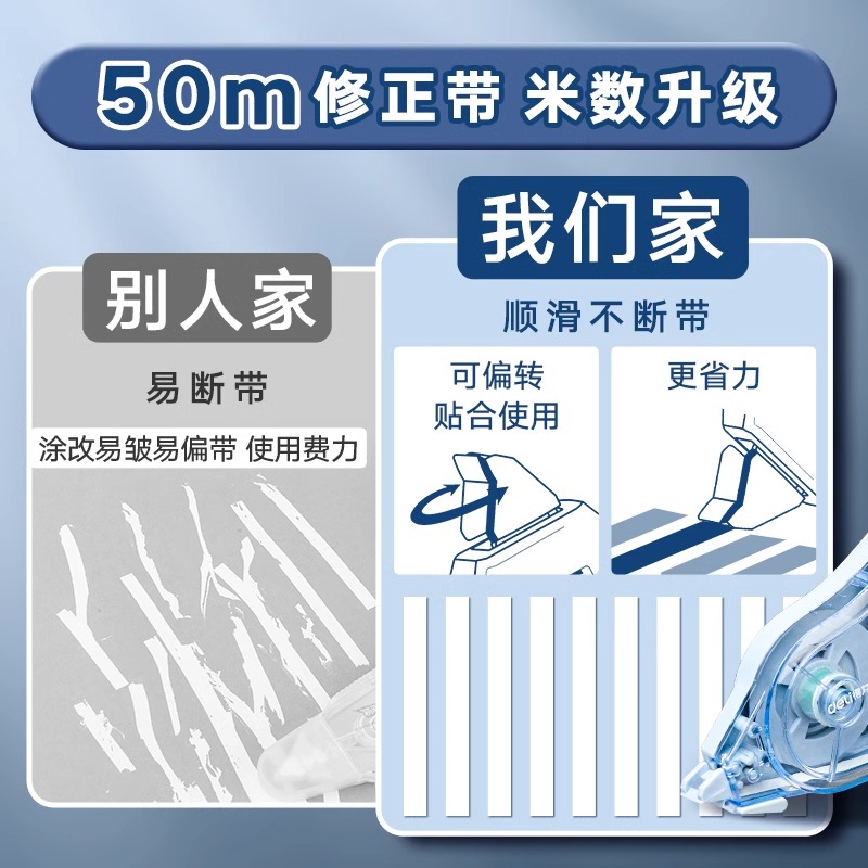 得力臻省力修正带大容量不断带涂改带实惠装臻顺滑学生专用超大耐摔静音高颜值女生黑科技网红创意新款改正带