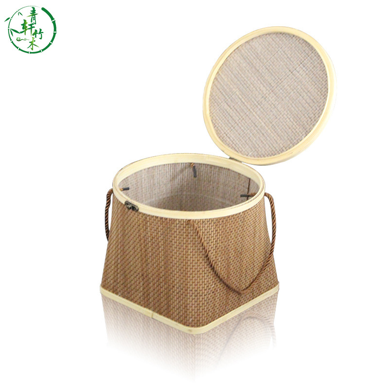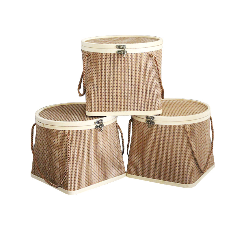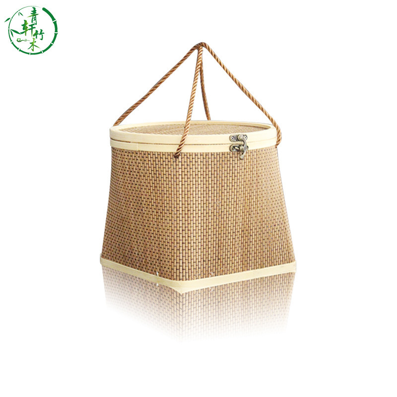 现货手工上圆下方竹篮手提中秋月饼年货礼盒鸡蛋篮端午粽子包装
