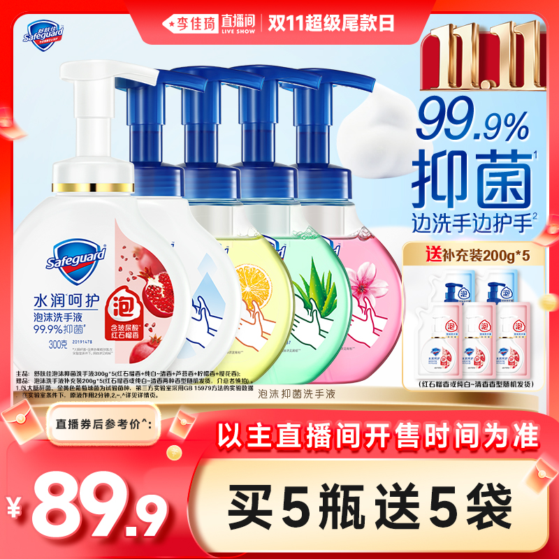 【李佳琦直播间超级尾款日】舒肤佳泡沫抑菌洗手液300g*5套组家用