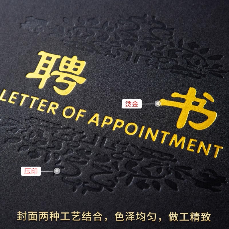 高档珠光面聘书横款任命书外壳定制封皮封面证书套定做企业专家职称班委家委会聘任书A4内页内芯打印烫金logo