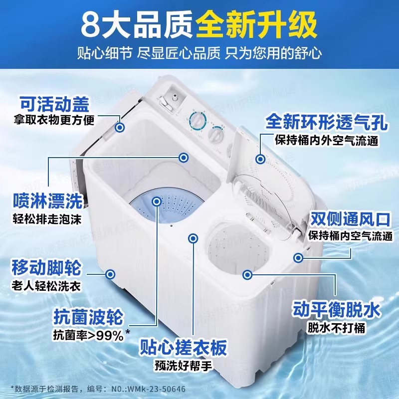 海尔12公斤大容量双缸洗衣机半自动双动力家用强去污XPB120-82A7