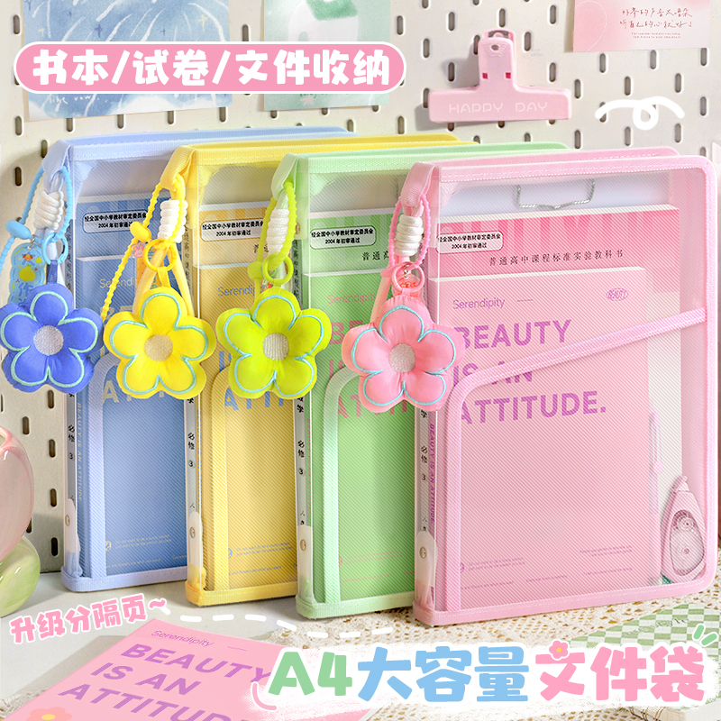 文件袋拉链式高颜值L型透明科目分类袋小学生学科书本试卷收纳袋手提大容量作业补习袋初中生专用a4试卷夹