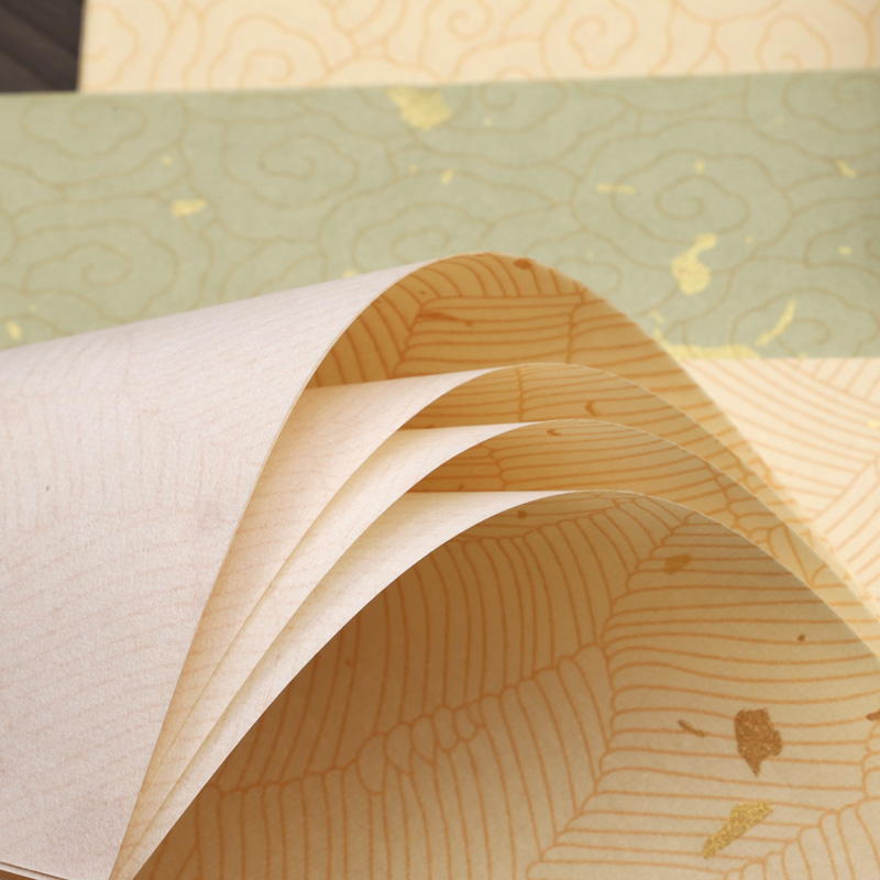蜡染笺绛云叶纹宣纸毛笔书法作品专用纸半生半熟四尺对开整张彩色洒金粉彩祥云宣纸小楷作品纸仿古国展投稿