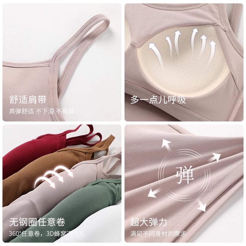美背性感无痕内衣女无钢圈小胸聚拢瑜伽吊带背心带胸垫舒适文胸罩