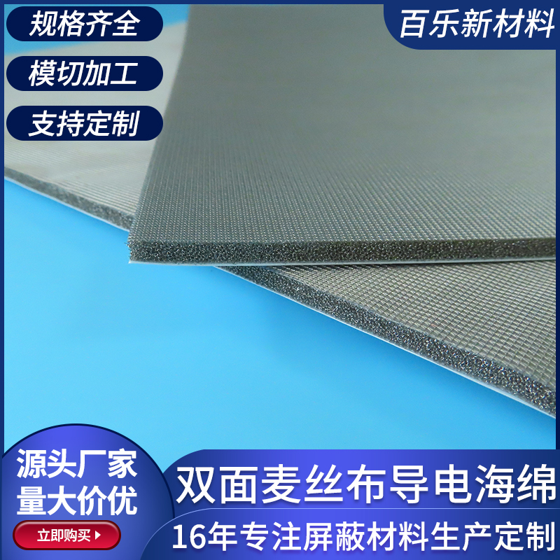 双面麦丝布导电海绵200*300mm全方面屏蔽绵背胶泡棉麦斯布可定制