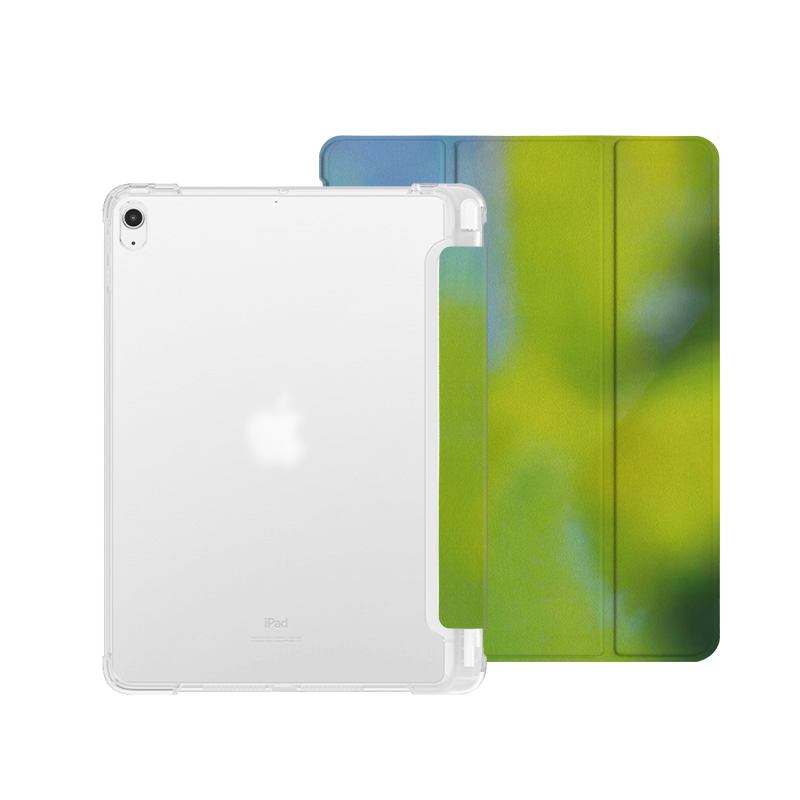 绿色梦幻渐变Y2K艺术ins小众适用平板壳iPad7/8/9/10壳2020带笔槽Air2/3/4/5苹果2021第九代11Pro三折min