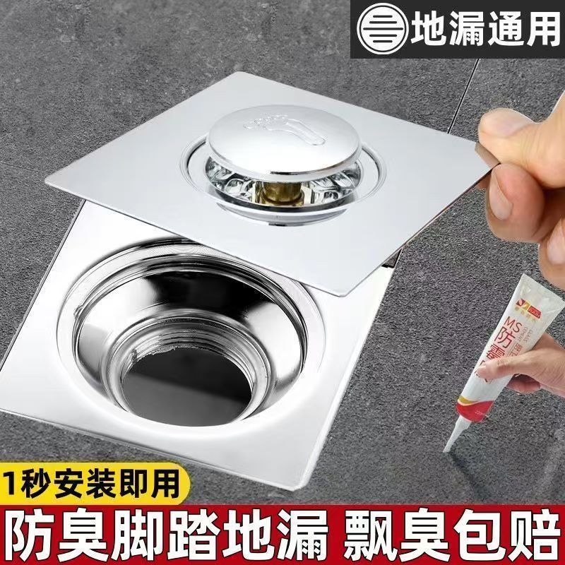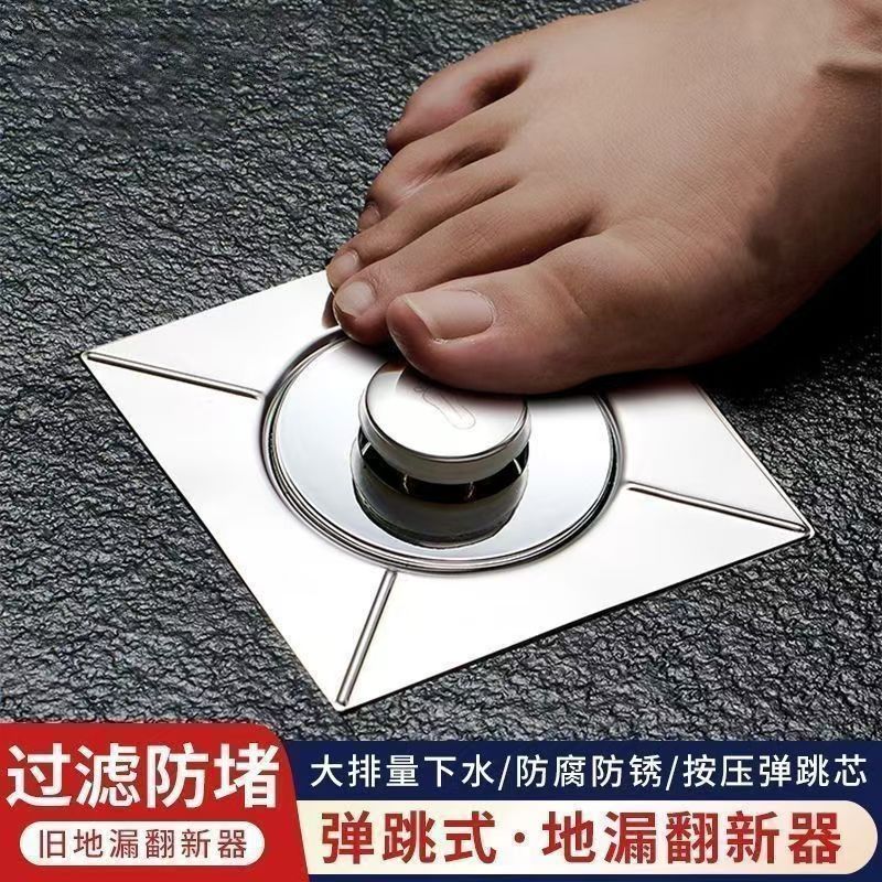 弹跳地漏防臭卫生间下水道通用防返臭漏封闭按压地漏盖脚踩式器