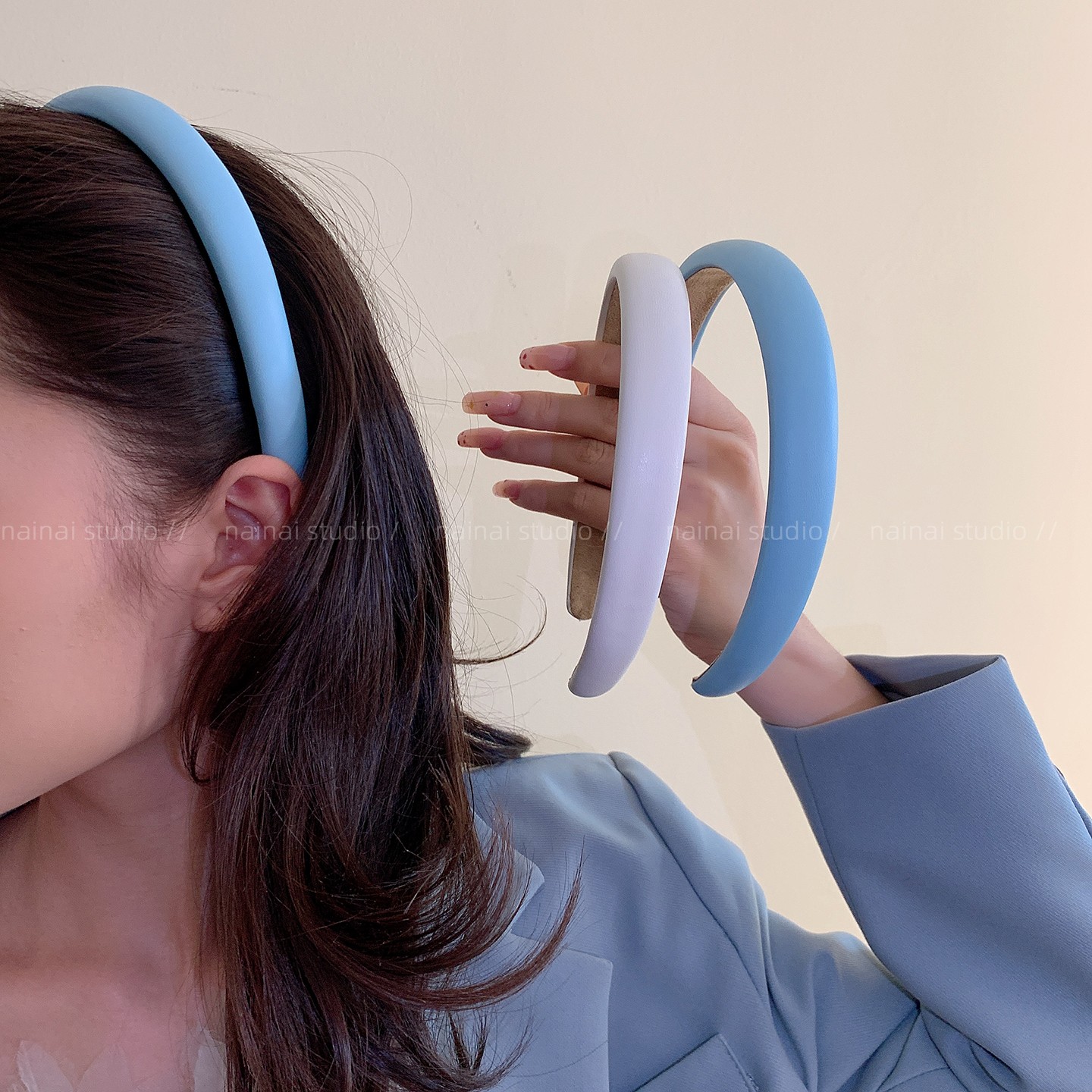 蓝色皮质发箍~甜美小清新2025夏季新款头箍外出发卡发饰头饰压发A