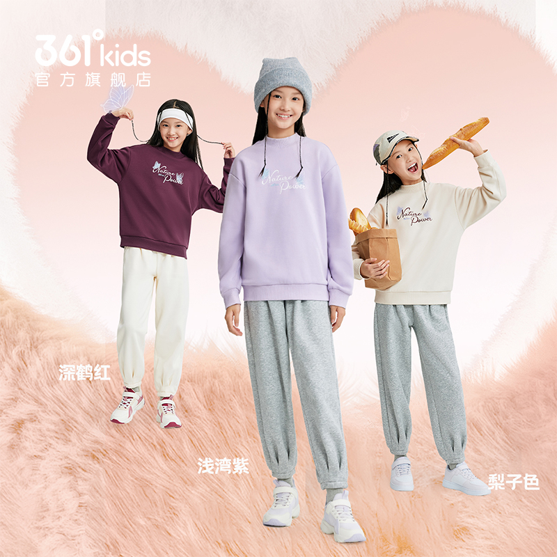 能暖科技|361童装女童加绒儿童套头卫衣2025冬季新款中大童上衣