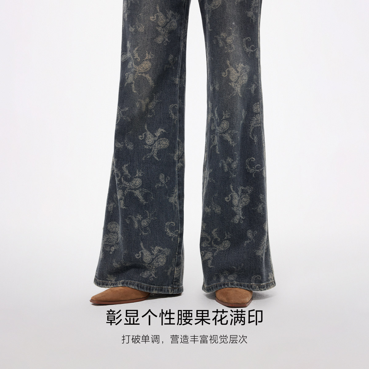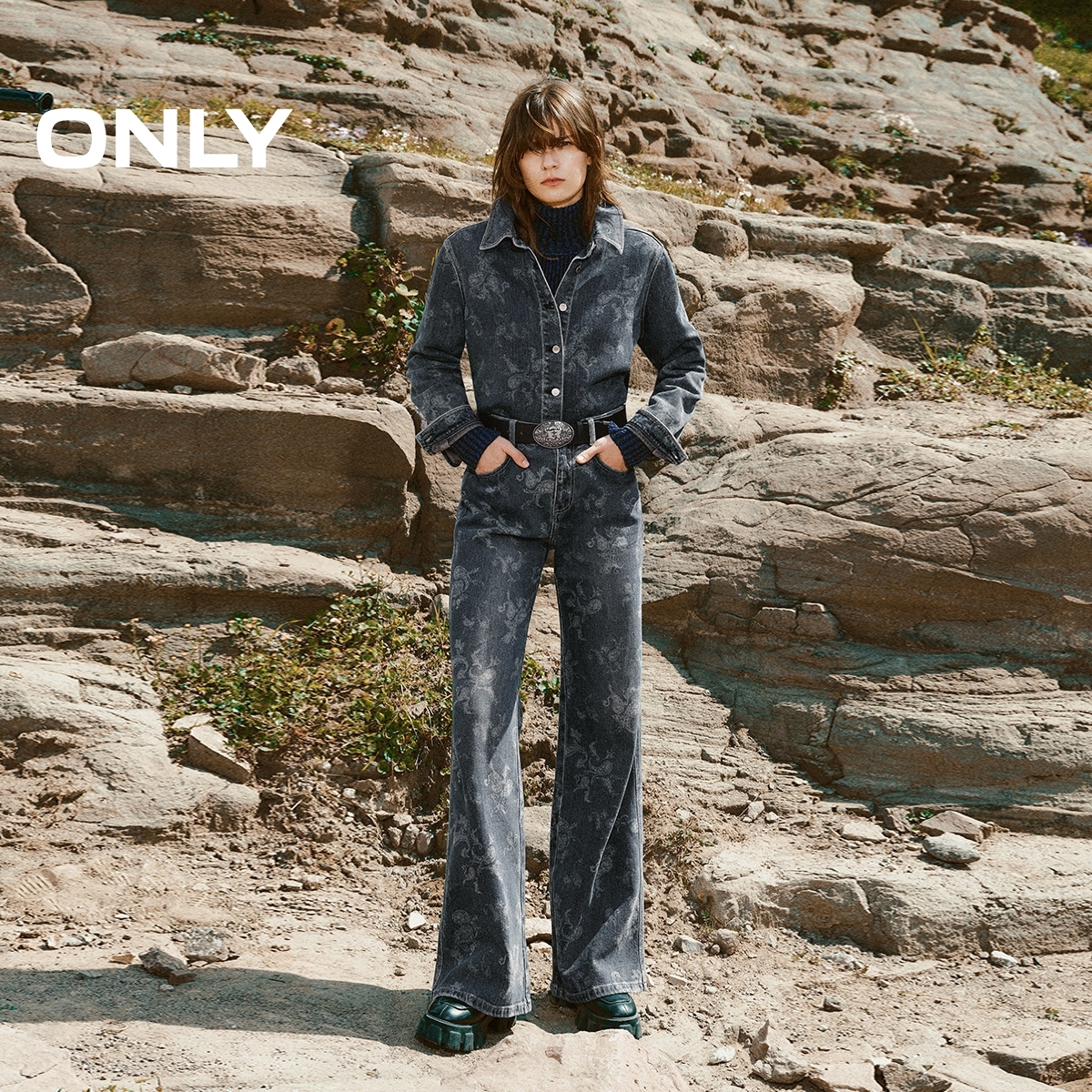ONLY2025冬季新款个性腰果花满印精致纽扣长裤喇叭裤牛仔裤女