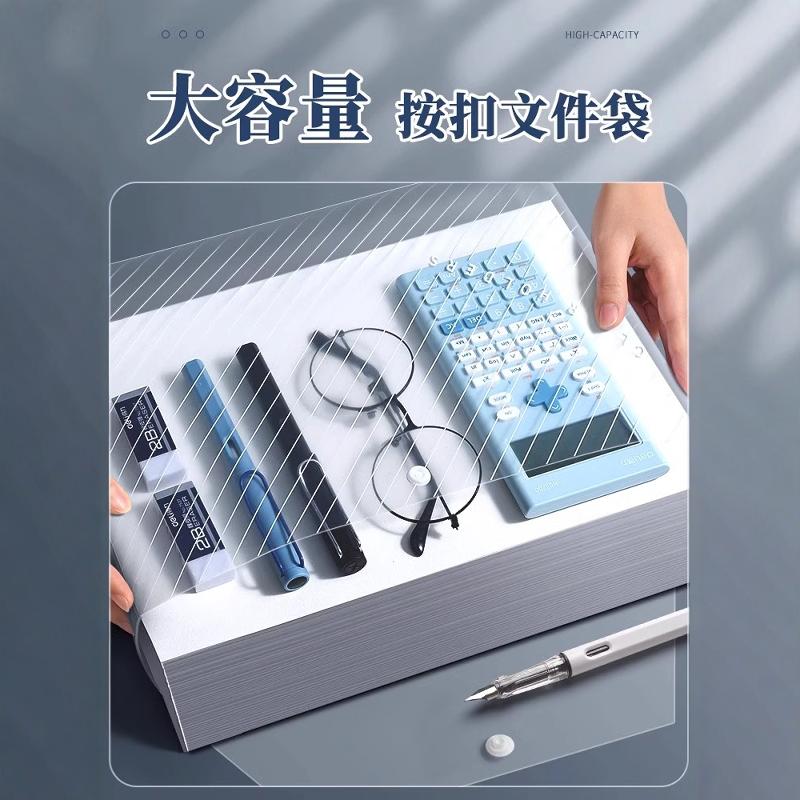 晨光a4文件袋纽扣袋按扣袋文件夹加厚透明档案袋塑料大容量资料袋商务办公学生考试文具用品试卷整理收纳用品