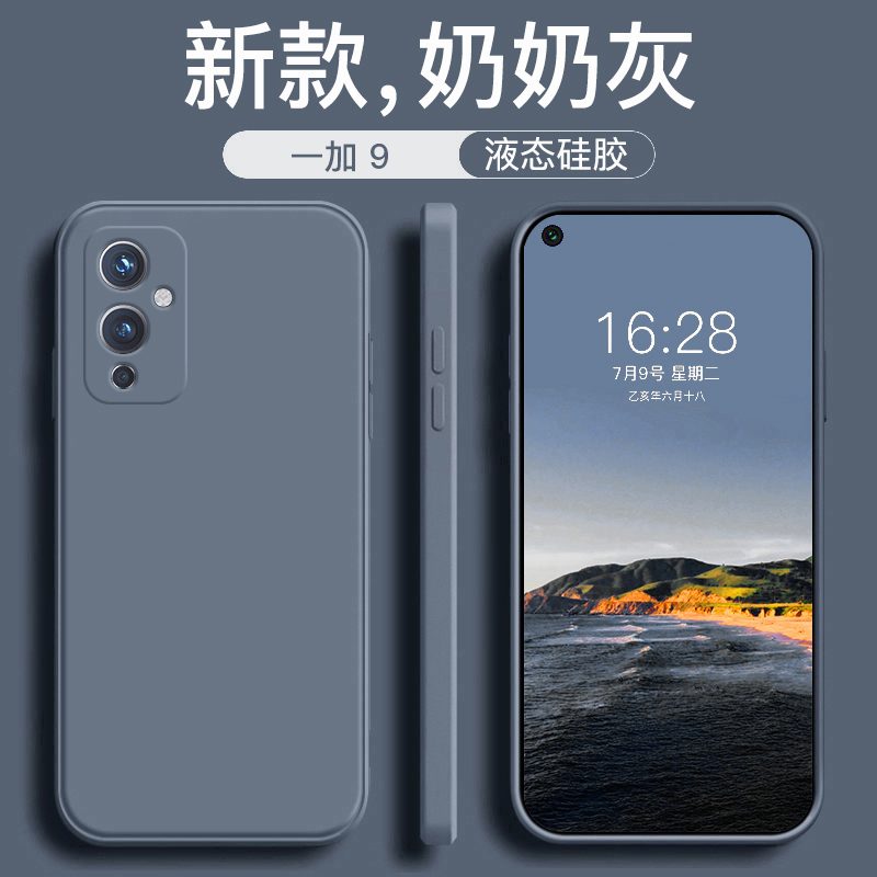 适用于一加9手机壳新款液态硅胶1+9Pro直边保护套全包防摔OnePlus一加9简约纯色男商务女网红高级感石墨黑软