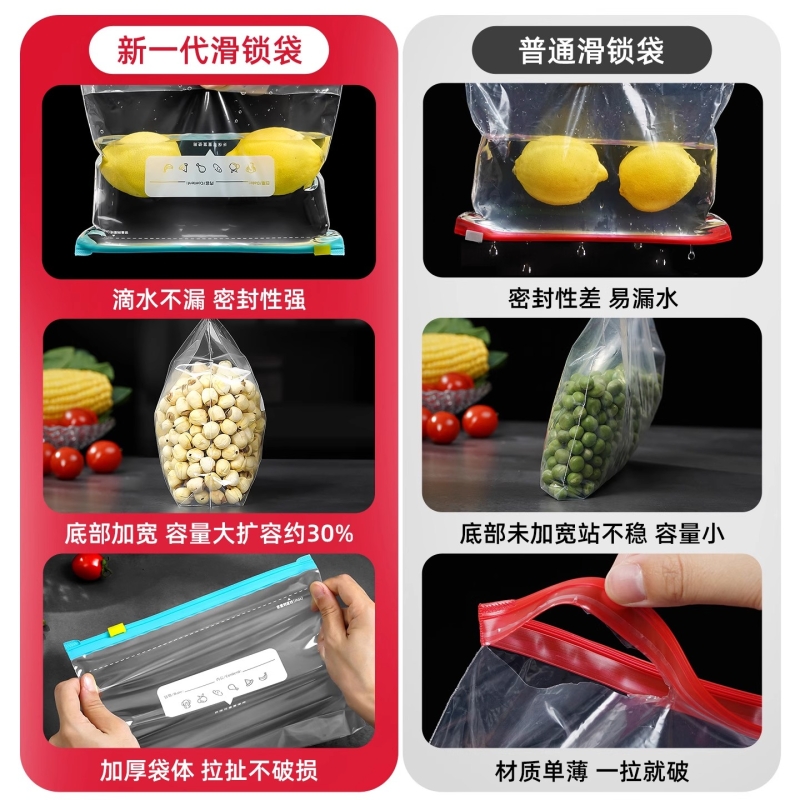 保鲜袋食品密封袋家用冰箱专用冷冻自封袋带封口塑封加厚收纳袋