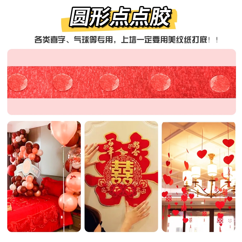 结婚胶带婚房布置无痕点点胶喜字纳米贴气球喜庆装饰高粘不伤墙婚礼主题布置红色布基粘地毯双喜胶布永结同心