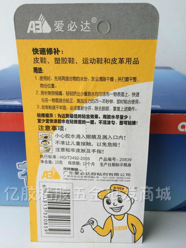 批发正品爱必达补鞋胶 快速修补皮鞋运动鞋皮革用品等 10克装
