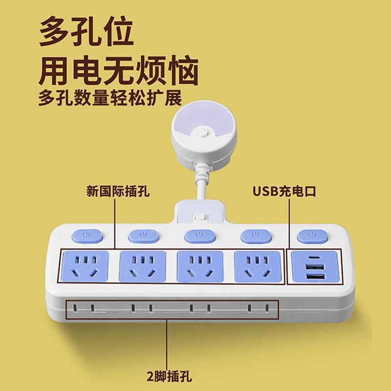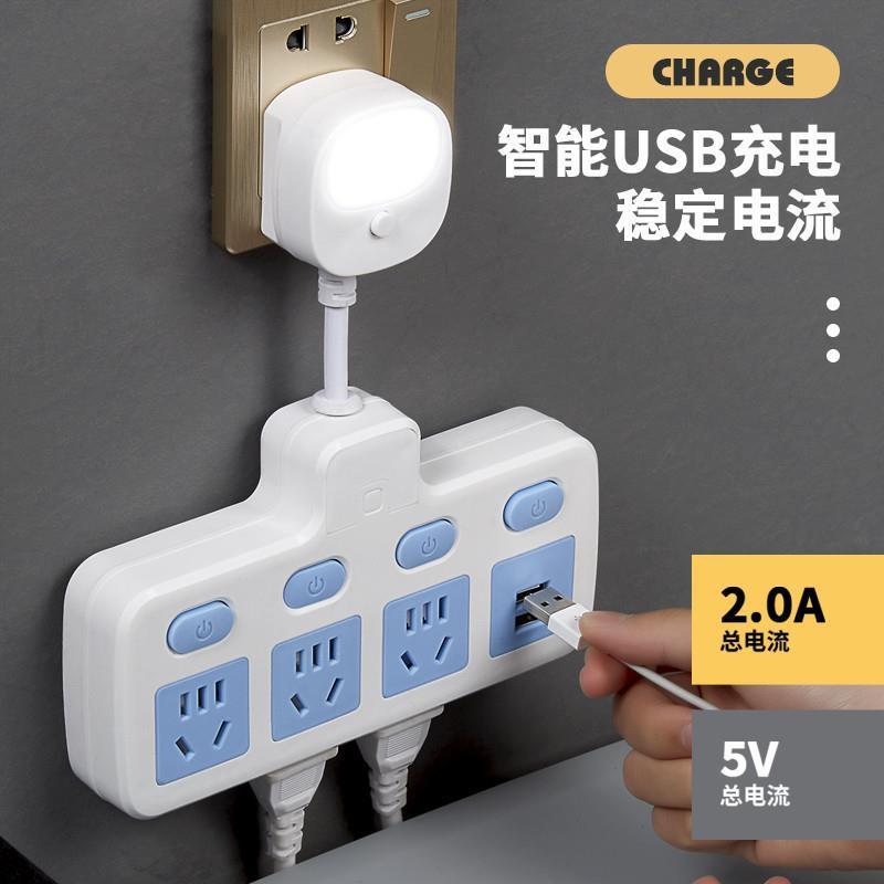 多功能插座转换器带小夜灯usb插板无线转换插头家用宿舍一转多孔