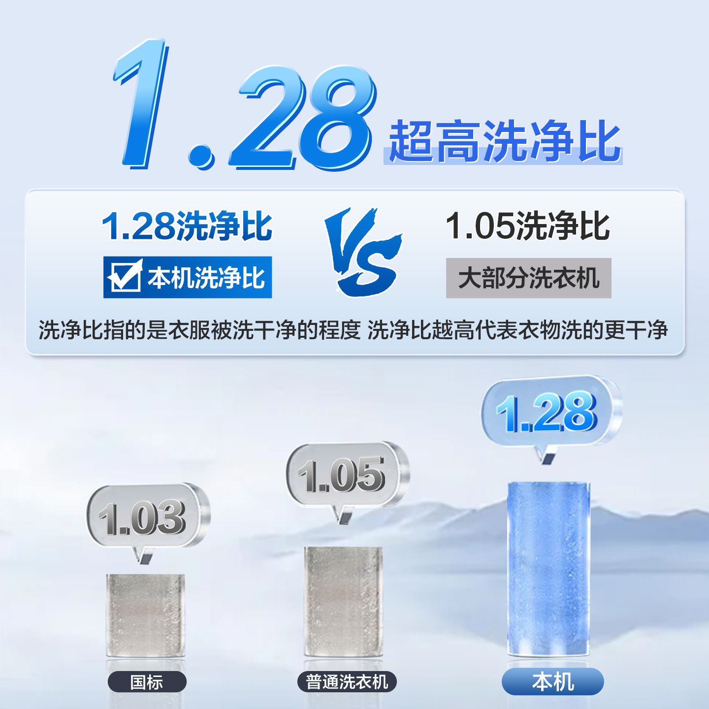 【1.28洗净比】小天鹅水魔方全自动家用滚筒洗衣机10公斤纯平洗烘