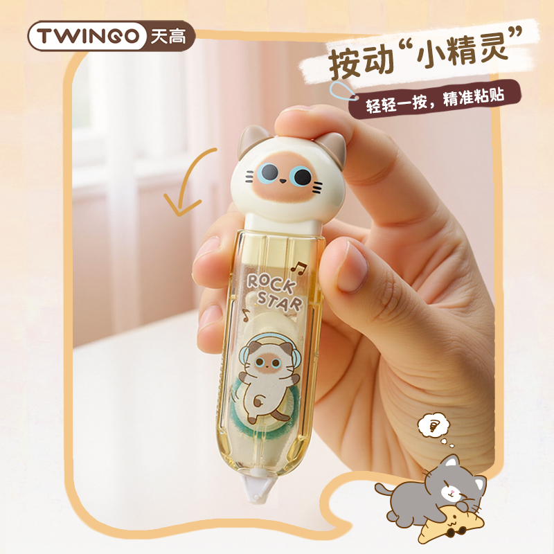女生可爱点点胶颜值ins风无痕大容量按动式点胶笔型胶带幼儿园儿童手工双面胶小学生专用卡通小猫咪迷你胶棒