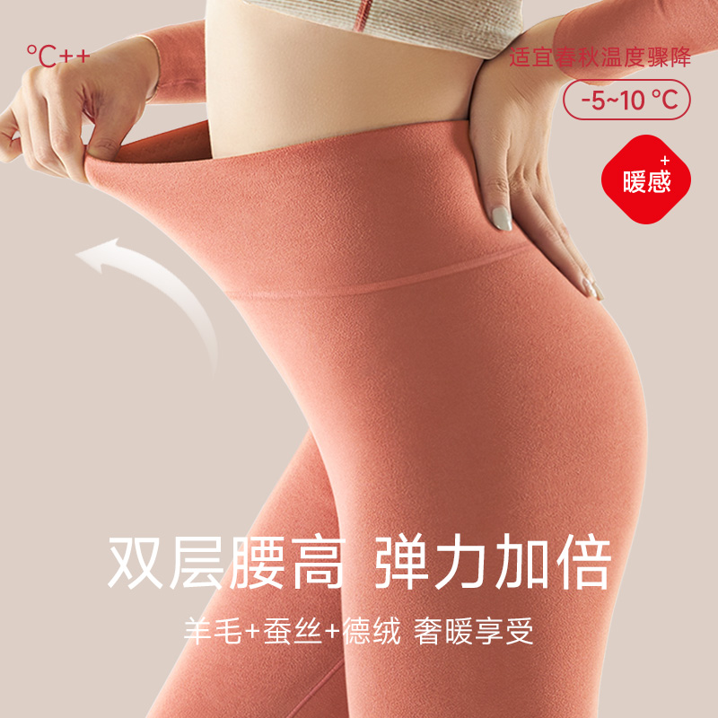 羊毛蚕丝秋裤女加厚加绒德无痕发热高腰保暖裤女羊毛棉裤打底裤冬