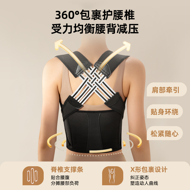 本博背部矫正器透气网背成人挺胸直背矫正带开背体态矫正神器