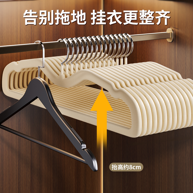 佳帮手植绒短颈衣架省空间家用缩脖衣服撑子防滑无痕不伤衣晾衣架