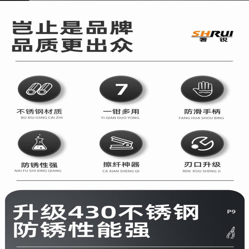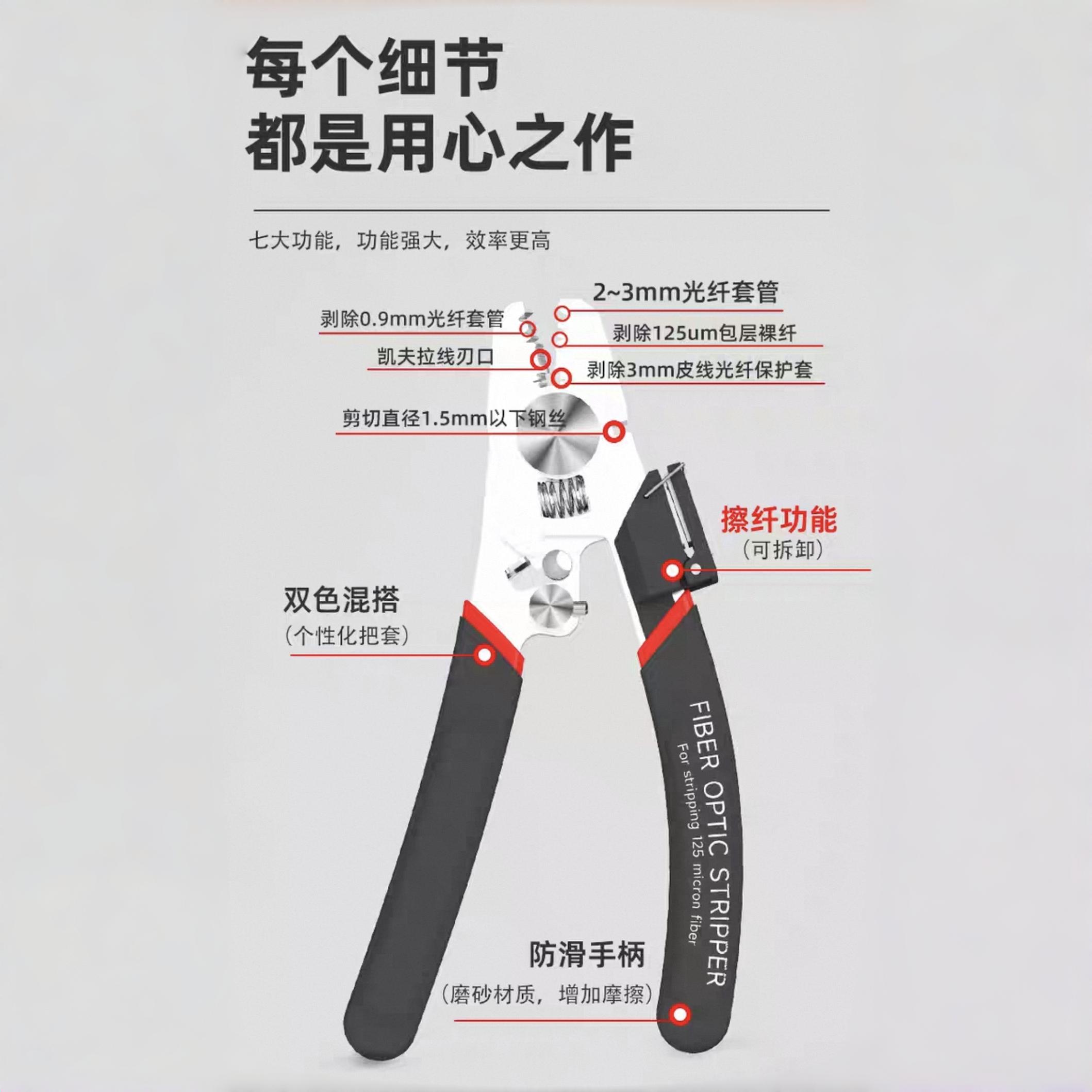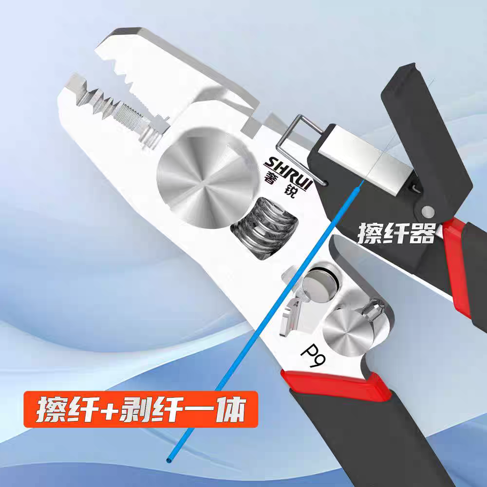 米勒钳奢锐P9光纤剥线钳多功能六口剥线钳皮线/裸纤/凯夫拉/加强钢丝剥纤钳一钳七用剥纤擦纤钳高硬度米勒钳