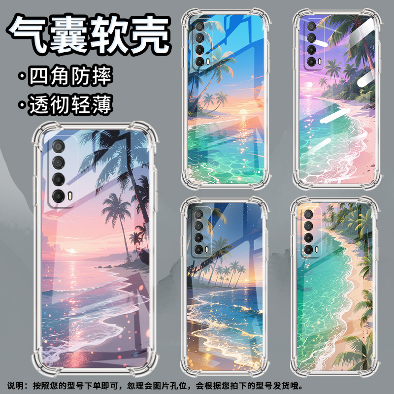 适用华为novaY60手机壳novaY61全包边华为novaY70高级感novaY70Plus气囊壳华为novaY72海岸线风景保护套