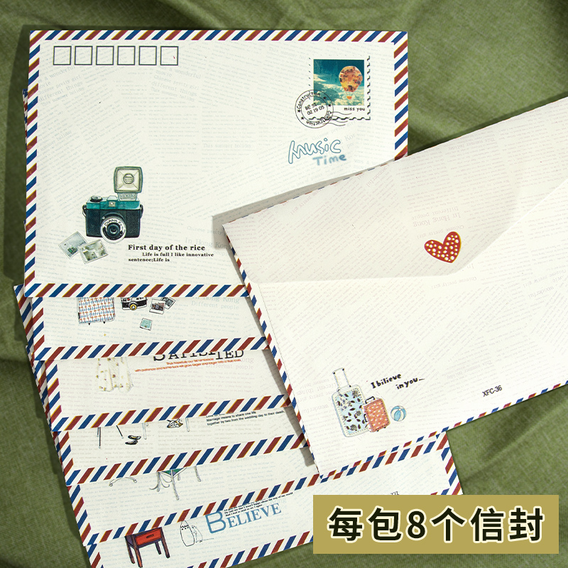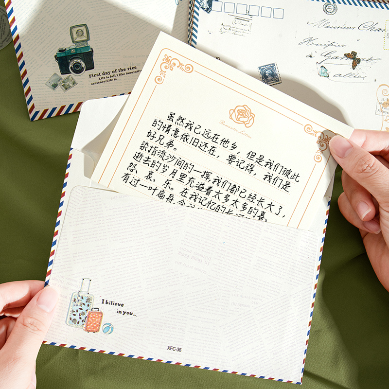 白色信封国外可邮寄欧式复古高级感情侣浪漫精致手写告白情书送男友送女友中式信笺信纸套装中国风邮票明信片