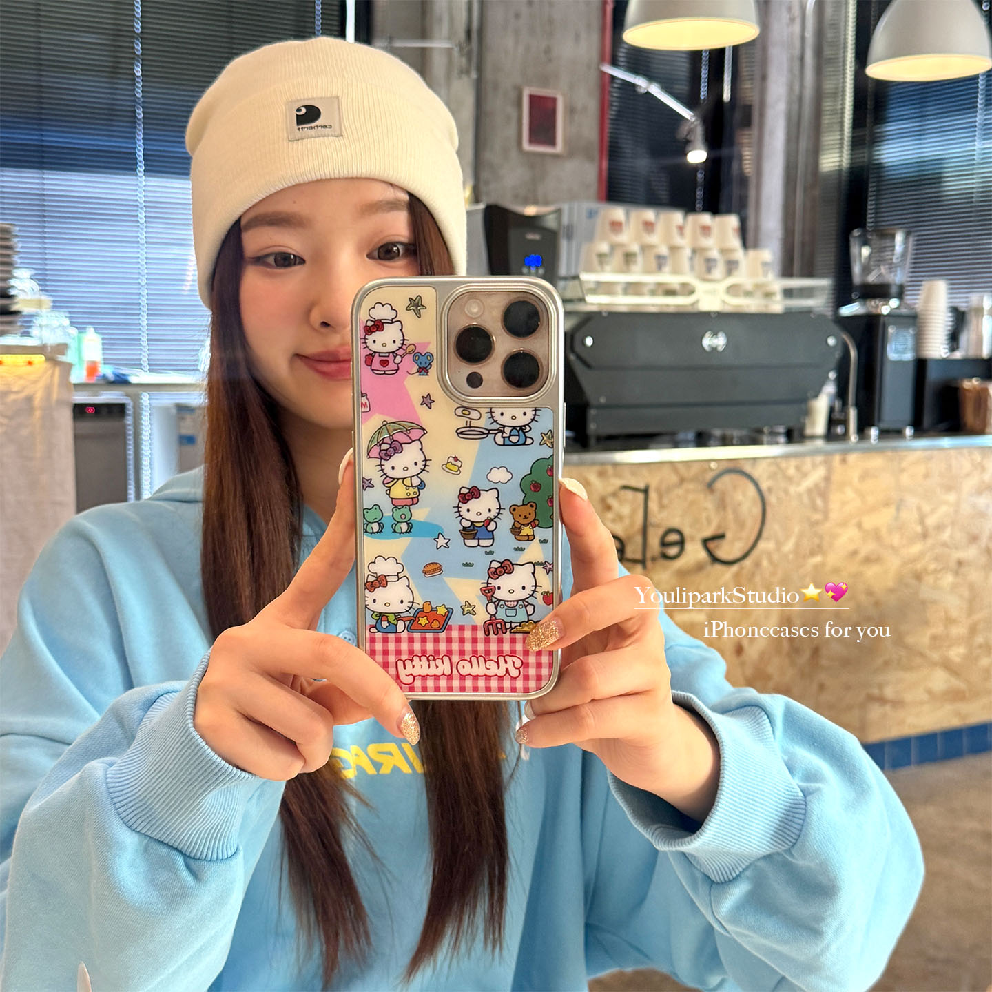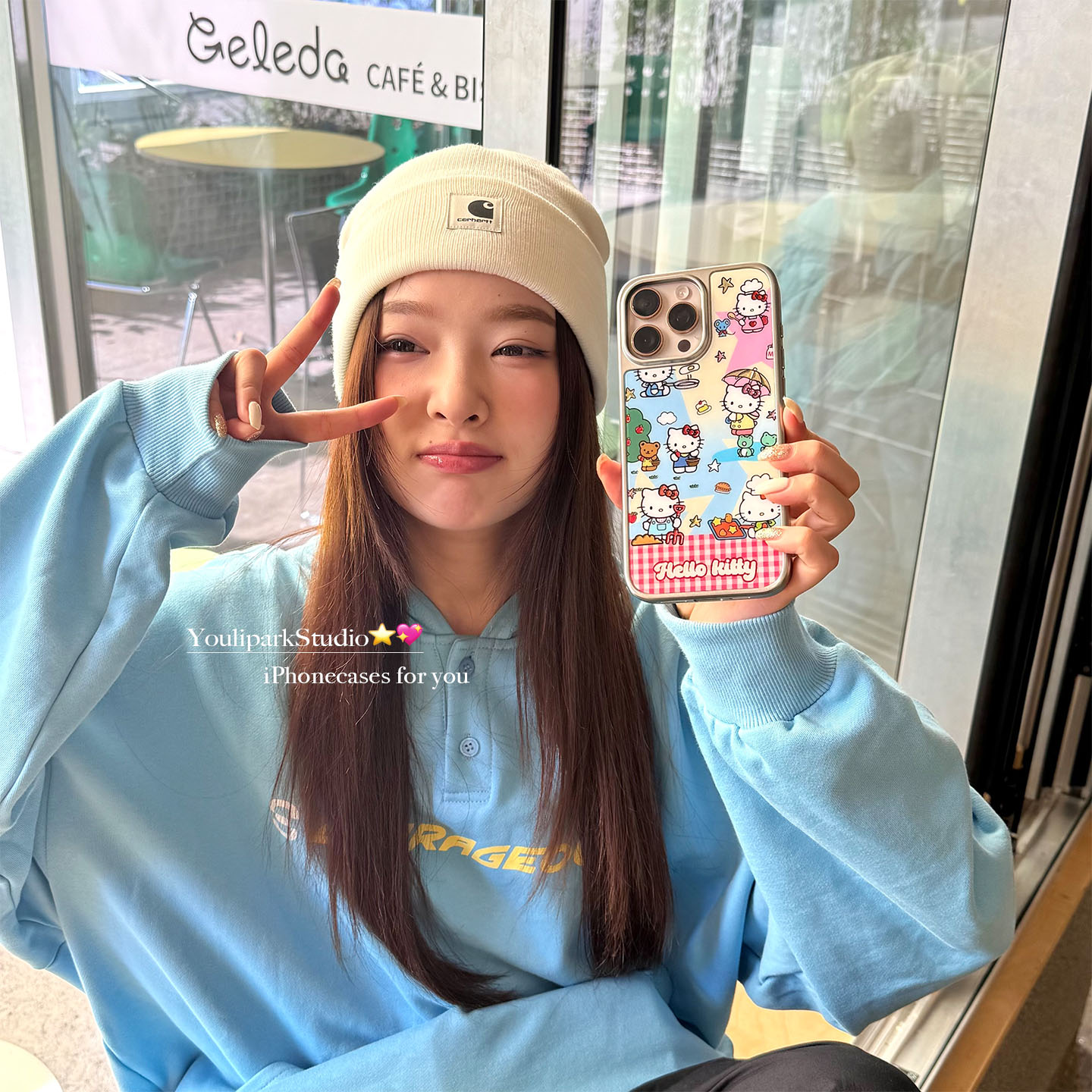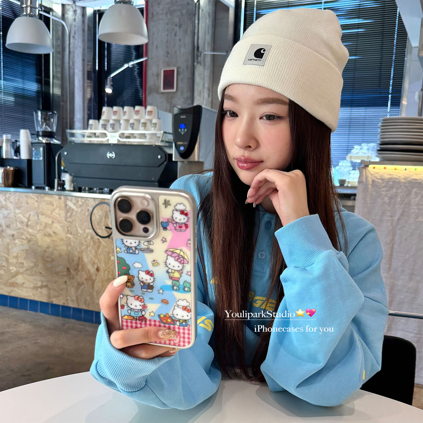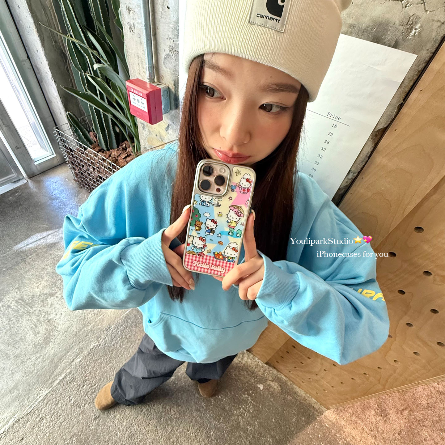 由里公园ins可爱格纹星星甜品猫咪插画15适用17pro苹果17ProMax手机壳iPhone16全包17电镀14Promax保护套13女