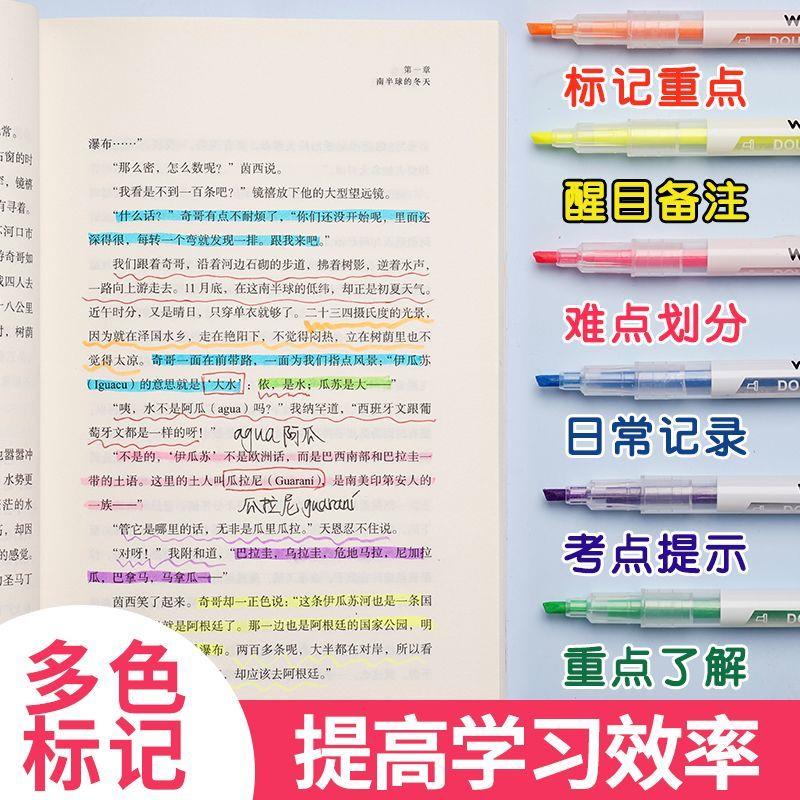 双头荧光笔标记笔学生用记号笔彩色划重点小学生专用初中生大容量