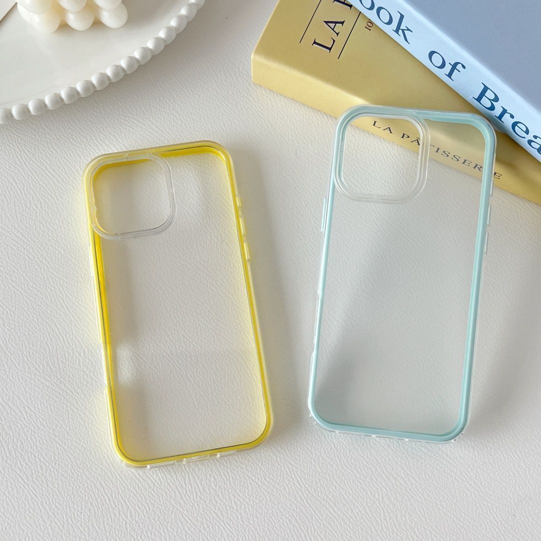 适用撞色边框透明手机壳适用苹果15小清新iPhone14简约13清爽12小