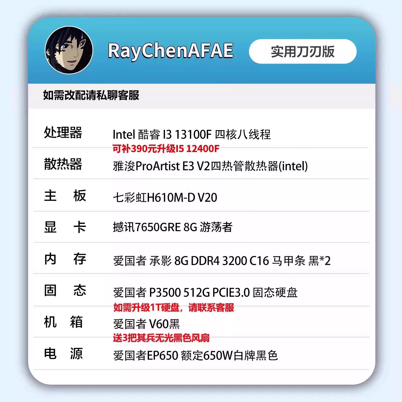 3000元神机视频第二期 13100F+7650GRE DIY游戏电脑主机