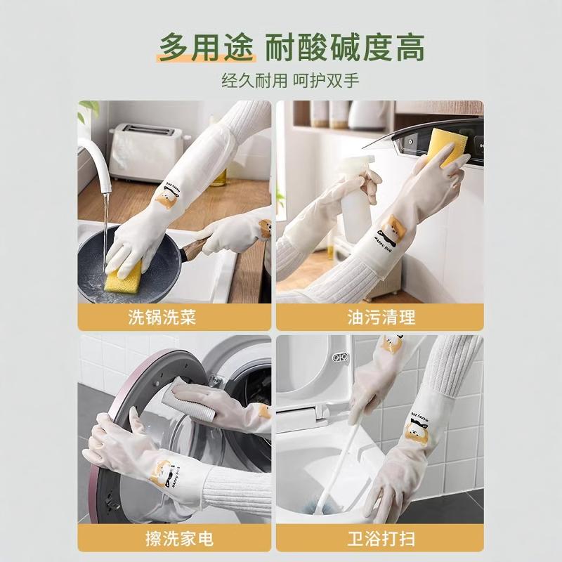 丁晴家务手套洗碗厨房专用清洁防水耐用加绒加长洗衣服橡胶皮防滑