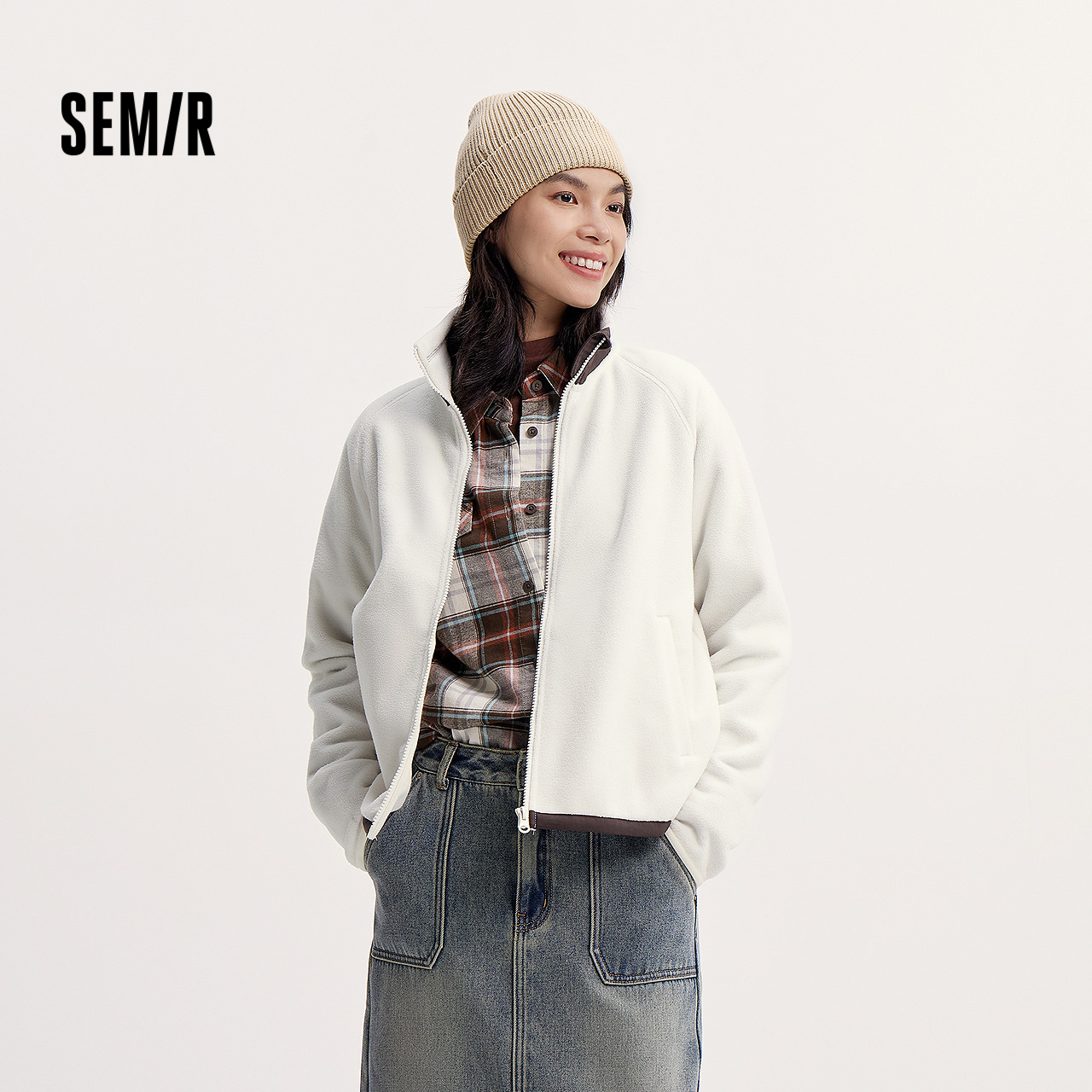 森马外套女抗静电摇粒绒宽松休闲百搭冬季拼接立领上衣夹克女装