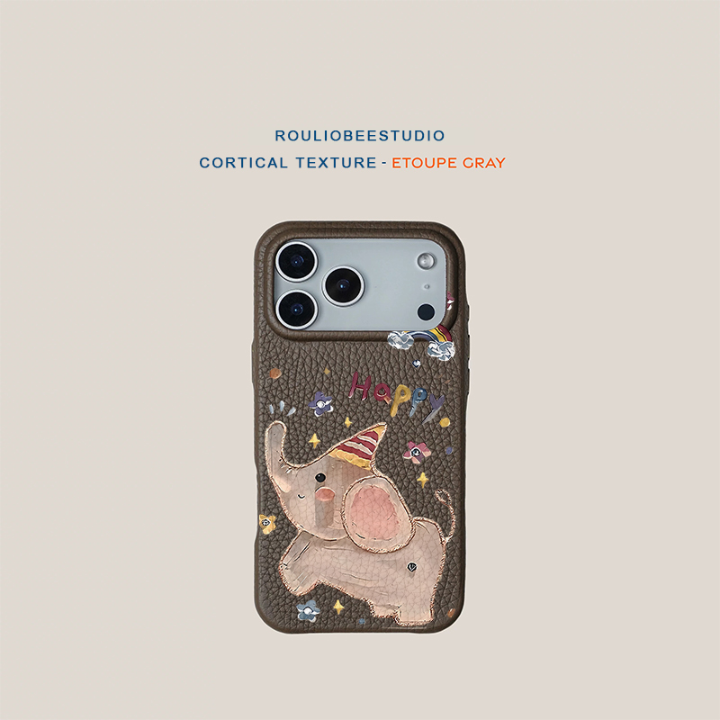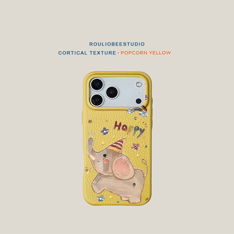 快乐油画小象适用苹果17pro手机壳iphone15pro新款16promax肤感11简约纯色14保护套12华为mate70时尚p60男女