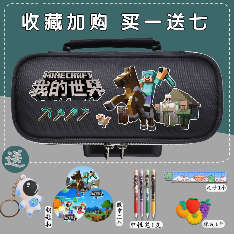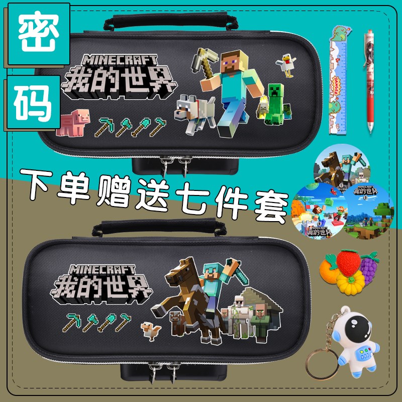 我的世界卡通密码文具盒小学生大容量铅笔袋双层高颜值男女孩文具