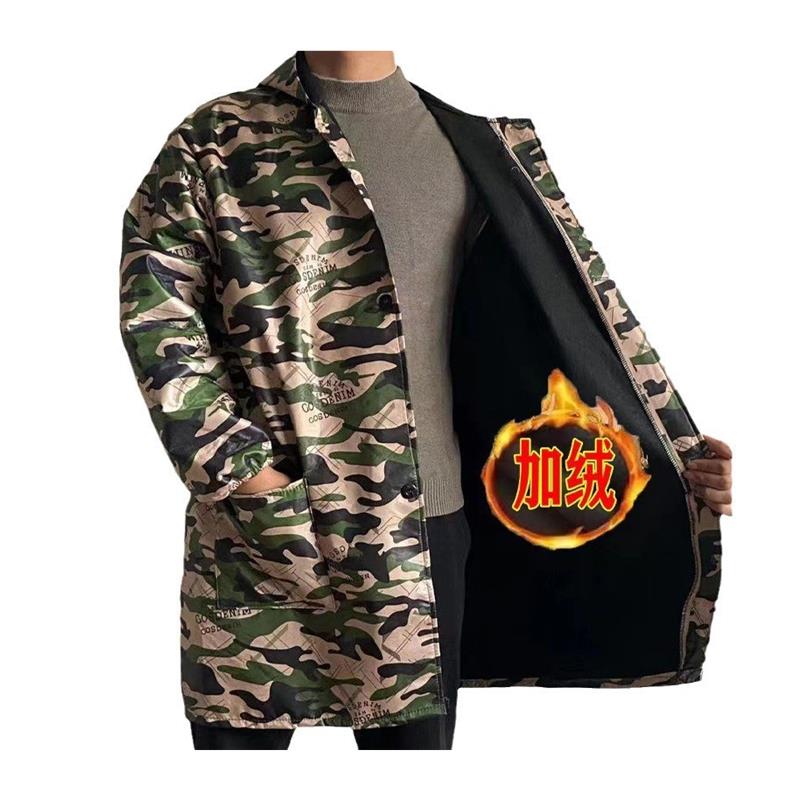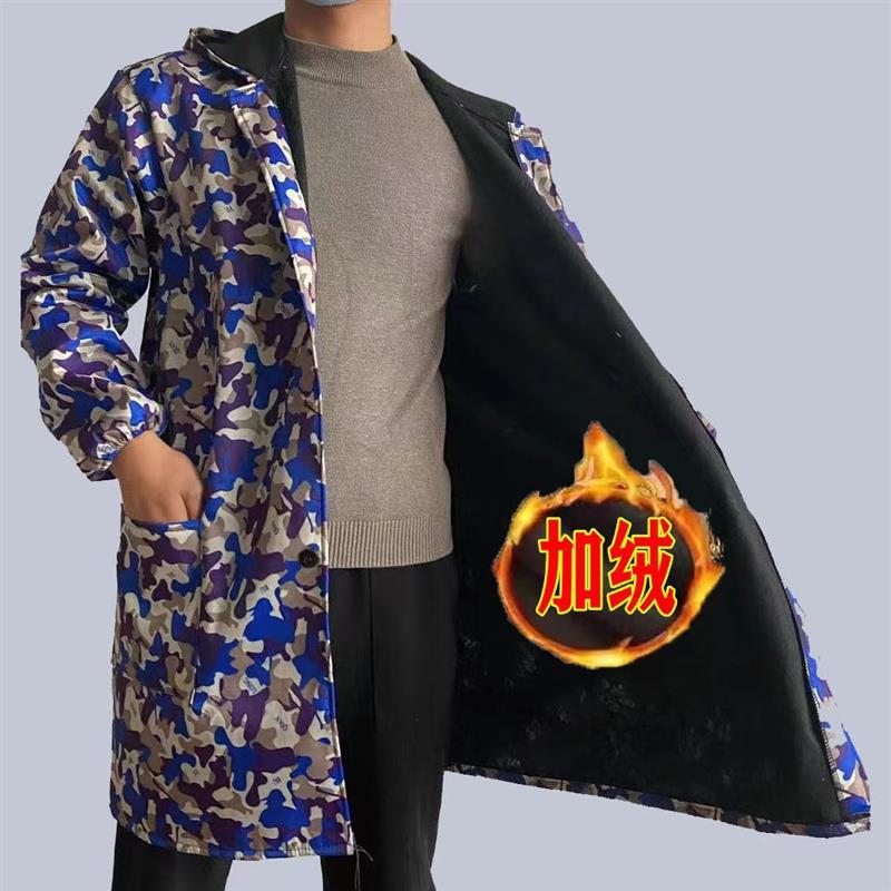 罩衣加绒秋冬男水防油污新款工作服大褂时尚迷彩护衣