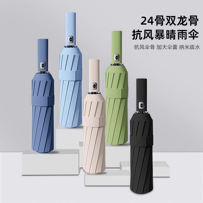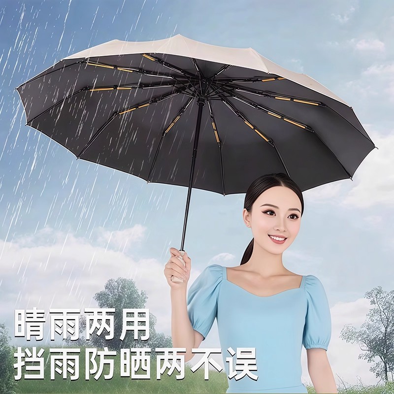 24骨自动雨伞晴雨两用耐用男女士防晒暴雨防紫外线三折折叠遮阳伞