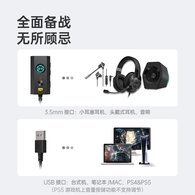 漫步者HECATE GS04独立声卡外置3.5mm耳机转USB接口电脑7.1音效