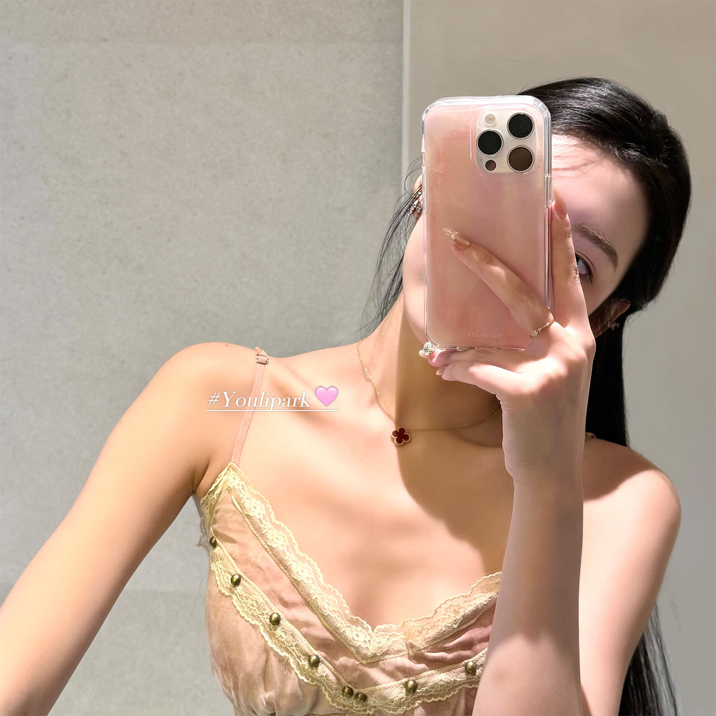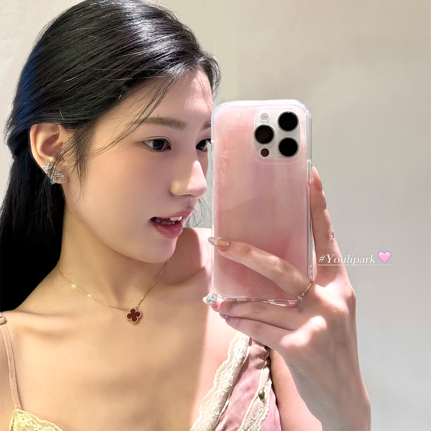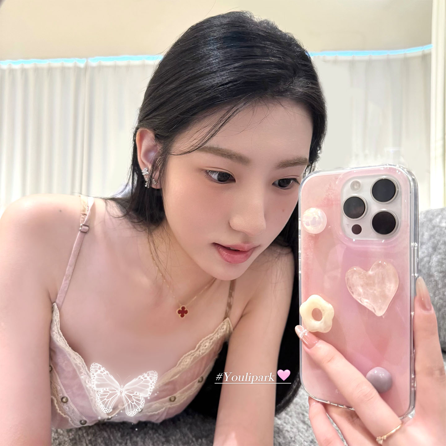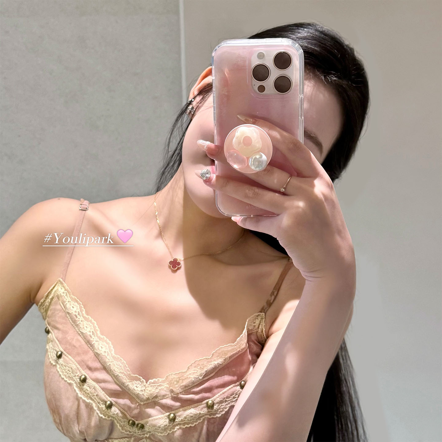 由里公园ins高级感韩系樱花粉立体宝石支架15适用16pro苹果16ProMax手机壳iPhone16全包14少女14Promax保护套