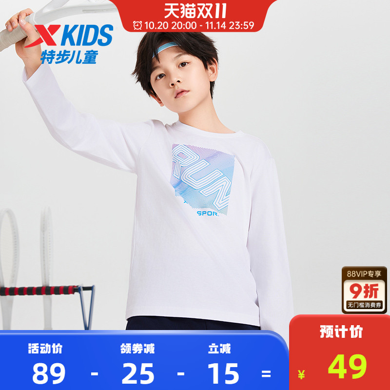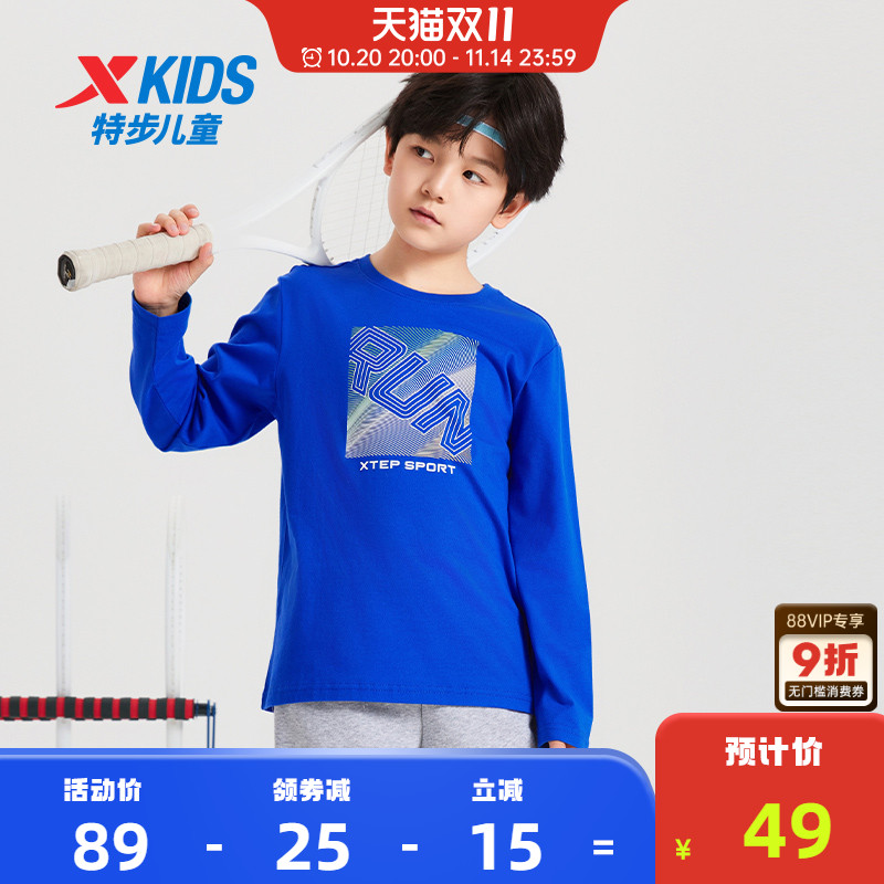 特步童装男童长袖T恤2025秋冬新款儿童纯棉上衣中大童打底衫秋装