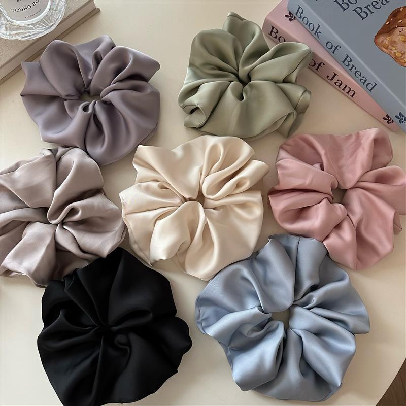 韩式缎面高级感纯色大号大肠发圈高弹力丸子头头绳奶蓝色头饰超大