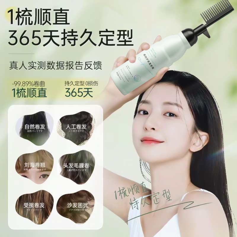 蛋白矫正直发膏免拉家用软化剂头发柔顺剂毛躁定型拉直一梳直刘海